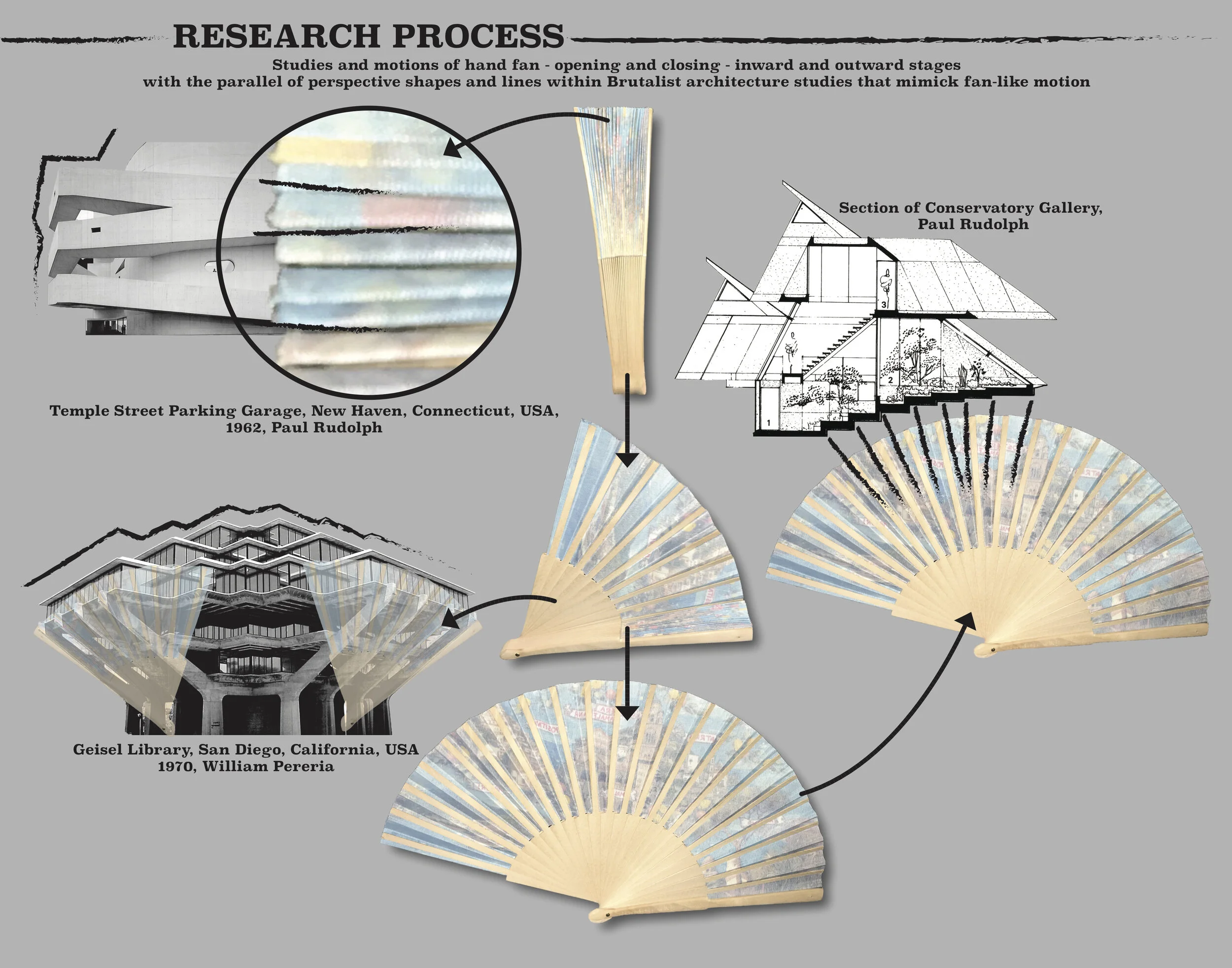 This special occasion collection is inspired by different perspectives when viewing Brutalist architecture and exposing its complexities. The garments begin tailored and close to the body, then transform to become more sculptural as they move away from the body. As a detailed oriented, yet Avante-garde designer, my goal in Exposing Accentuation is to combine these contrasting themes of tailored and sculptural by integrating a fan-opening movement that slowly transcends between each look in a storylike way.